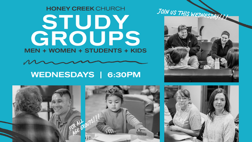 Join us Wednesdays at 6:30pm for our Men+Women+Youth+Kids study groups! You don’t have to do life alone. At Honey Creek, we value community and invite you to join us - let’s do life together!